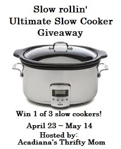 WOWZERS! Acadiana's Thrifty Mom has teamed up with American Family and an awesome group of bloggers to bring you this terrific giveaway for 3 slow cookers valued at $150 each! They are 6 quarts each. 3 prizes means 3 times as many chances to win ♥ I can't wait to choose the winners on this giveaway. This awesome givewaway is sponsored by American Family and hosted by Acadiana's Thrifty Mom & Frugality For Less ♥ Just fill out the simple rafflecopter form below. GOOD LUCK ♥Tuesday, April 17, 2012